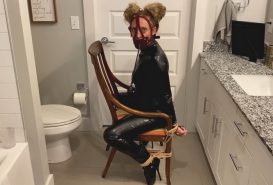 Ariyana taped to a chair, borntobebound