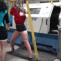 Adara got into trouble in 2014 (same title as above) and her parole officer decided to teach her a lesson with some bondage. Now she is back in trouble again. She paces around the jail cell in an orange straitjecket and matching pants. Her parole officer comes in makes her change and takes her home. Back at her house Adara changes into a girdle, fully fashioned stockings and a long line bra. She also gets a leather waist cincher and black bolero jacket. She sits in the chair. Her legs are shackled to a spreader bar. Her arms are cuffed up oddly with leg irons, but only after she is told to gag herself with a big white gag. Her hands are eventually taped up into little t-rex arms or mits so she can’t pick at the gag. Her legs are spread and the white panties against her tan young skin gleam. She gets chains wrapped around her body and nipple clamps are added. Her gag is eventually removed and a big metal head cage goes on. It fits snugly, it is pushed back making her drool all over herself. She is helpless and humiliated and not sure what this mad woman is going to do to her. Purple handcuffs are added as weights to the nipple clamps and she is left in misery. Who is the real criminal here?