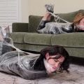 Alba is standing in the middle of the room dressed in sexy black lingerie that really shows off her sexy body! She has a VERY large collection of tape and plastic wrap on the sofa nearby, and when I enter the room, she begins to speak to me in her native Italian. Unfortunately, I don’t speak Italian, and so I am unsure what she wants. As she gestures to the tape and plastic and begins posing with her hands behind her, I begin to understand. She wants to be tied up with all of her supplies! I am only to happy to oblige, and begin encasing the girl as she happily moans, begging me to make it as tight as she can stand it! As her limbs are fused with her elbows nearly touching, she loses more and more of her mobility and freedom. She keeps gesturing toward the tape, and I wrap it over her already tight packaging in multiple criss-crossing layers. I’m a little embarrassed that I cannot understand anything she says to me, and I decide the best thing to do is to end the conversation for good by stuffing a large rag in her mouth and wrapping the plastic tightly around her face to seal it in! Now that she has been transformed into a helpless little package, I lay her down to struggle and moan, pleased at the lovely foreign package I now own, and I didn’t even need to pay a tariff!