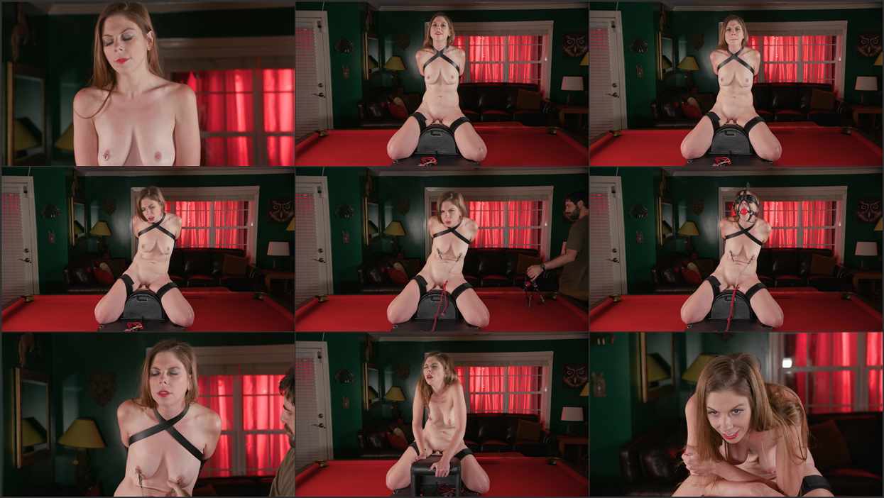 Alice Maze walks up to the Sybian, strips, and hops aboard, shoving the Sybian dildo in her hole. She gets strapped down with ankle and thigh cuffs to a bondage board so she will not be able to lift herself off of the Sybian, then an armbinder binders her arms behind her back fully securing her in place. The ride begins, as the Sybian slowly ramps up over time, increasing the stimulation to her clit and g-spot, as she moans in response to the sensations.