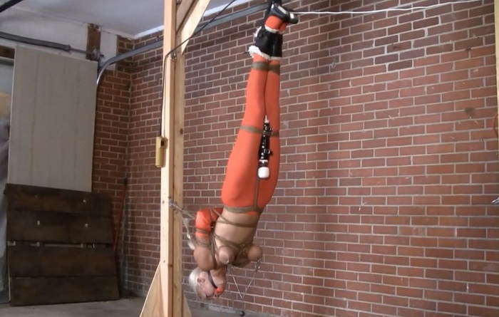 I set her down on a box to get started. I start with that long beautiful hair. Hair tying her for what was to come. At that point I go to work on her upper body. Around and around the ropes go getting tighter and tighter as more is added. Her breast came next. With a smaller rope her breast are bound till they begin to swell and turn purple. You can see the pain in her face. With the hoist I raise her high on her toes to do her legs. I bind her legs super tight and shove a vibrator deep in her pussy. She struggles with her situation. I tell her get use to it because we are just getting started. I lower her down to the floor for the next faze…