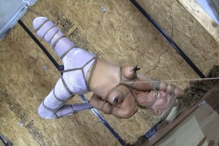 Amanda wanted to try a hard core suspension that she had seen. I looked at it and told her that this was really tough to do. She didn’t care she just wanted to try it. Suspended by one leg at the knee she is in a pretzel position. In this position there is know way to relieve any pain. Especially once the other leg is bent around and attached to her fair arm. She moans as she hangs in this most uncomfortable position for what she thought was an eternity. Come enjoy this step by step on screen tie of a very tough suspension.