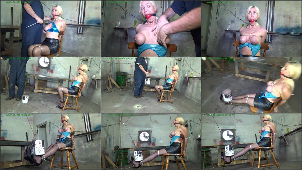 Hot busty blond MILF Amanda struggles in her chair tightly bound with nylon zip-ties. Her arms are tied behind her back with zip-ties pulling her elbows close and her wrists fused tightly together. Her slender legs are welded together with more zip-ties around her ankles and knees. A big red ball gag that spreads her jaws painfully open, has been jammed between her teeth. Amanda struggles desperately in the chair but she knows there is no escaping nylon zip-ties until someone cuts them off. The Hunter walks in with a heavy gallon of paint and places it at her feet. Amanda begs and cries into her gag but her pleas are futile. He grabs a few more zip-ties and pulls her big beautiful tits out of her tiny halter top. Amanda looks down in XXXX as he wraps a zip-tie around the base of her right tit. She screams into her gag in pain as he pulls the zip-tie tight. The hard nylon band slices deep into the soft flesh around the base of her breast causing it to swell and bulge as it mushrooms out. She begs and cries into her gag as he wraps another zip-tie around the base of her other tit and pulls it tight. Amanda breast begin to swell and throb in pain as the nylon cut deep into her flesh. Her eyes go wild over her big red ball gag as he wraps another zip-tie around both of her bound swollen tits then binds them tightly together. Amanda looks down at her bound, swollen tits as they throb in pain from the brutally tight bondage…