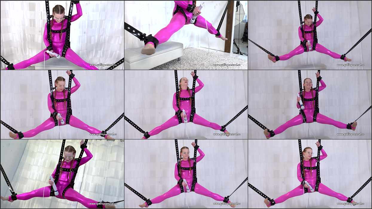 Hoist Amy into the air with a vibrator in her hand and she’ll make a game out of it. The game being making herself cum, that is. She’s very excited.