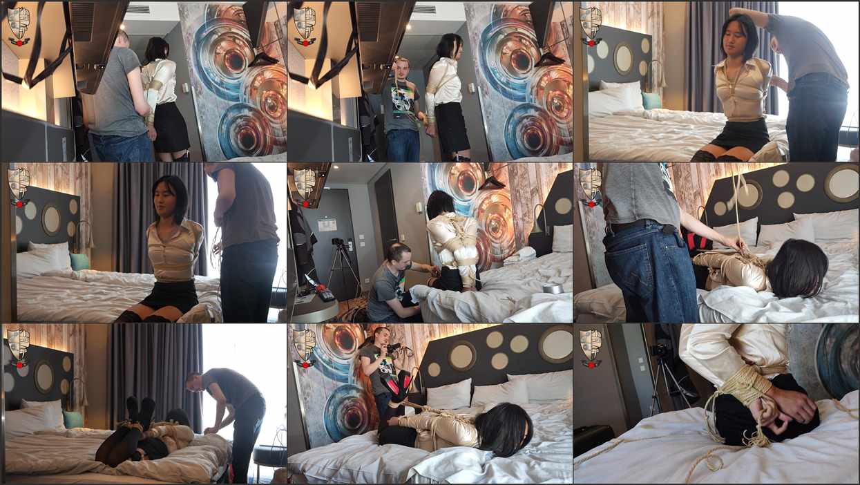 It was our first meeting, so: Time for a Dave Annis tribute hogtie for Allie Bowstring! Her arms were never bound more before! She ends up tape gagged and hogtied! Onscreen Tying!