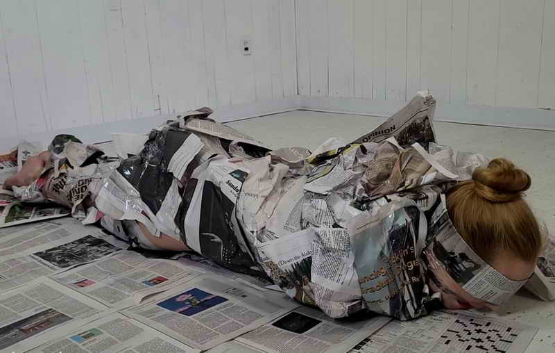 Her friend went missing. She decides to go door to door asking questions. A nice woman invites her in and offers her tea, only she isn’t so nice and it is not a just a lovely English Breakfast tea…. Ariel Anderssen finds herself in loads of trouble. She is being dragged into an unusual newspapered room. She finds herself undressed in a chair and being taped up reverse prayer style. Crumbled up newspaper is being put into her mouth and her head is wrapped with clear tape. In an unusual turn of events the woman does the same thing to herself. Ariel struggles barefoot in the chair and then the woman returns and changes the gag, more newspaper with tight microfoam tape, more struggling in the chair. Then the newspaper gag is removed and a ballgag goes in her mouth. The woman applies red lips to her… Her arms are retaped strappado style. A rope is applied to her feet and that rope is tied off to the ceiling so she can just kind of squirm and do half rolls. She is drooling all over on the newspaper, her feet and body are now filthy from the newspaper print. The overhead rope is removed and she is wrapped up in the paper that was lining the floor and a newspaper blindfold goes over her beautiful face and her toes are tied with newspaper. What on earth will this woman do to her next.