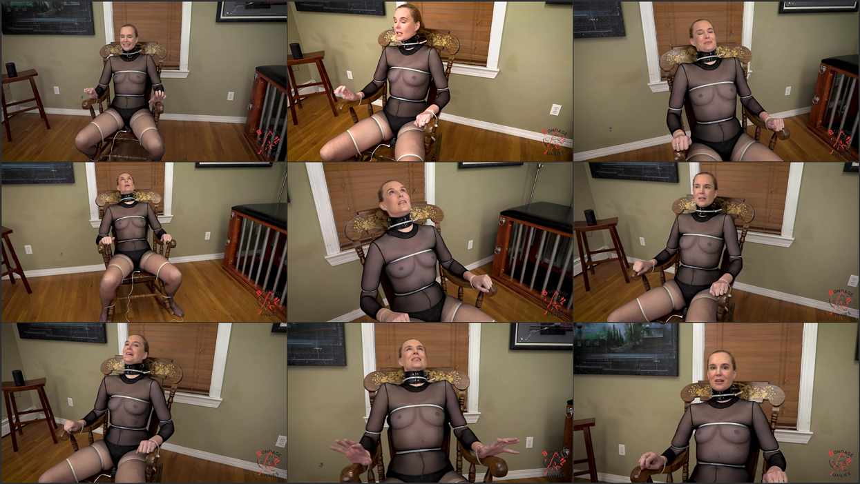 As I was giving Ariel the grand tour on her last visit, she was very curious about the TENS devices. I could have given her a simple demonstration, but where was the fun in that? She seemed to agree and decided to make a game of it. Dressed in a nylon bodysuit, Ariel was zip-tied to a chair from the neck down using heavy-duty HVAC ties. There wouldn’t be any escape until she answered all of the questions. After listing all the areas she was well versed in, like literature, Shakespeare, geography, and the arts, she should have expected none of the questions would be on those subjects. Every few wrong answers, the power level was increased, which only caused her brain to freeze more on questions she knew.
