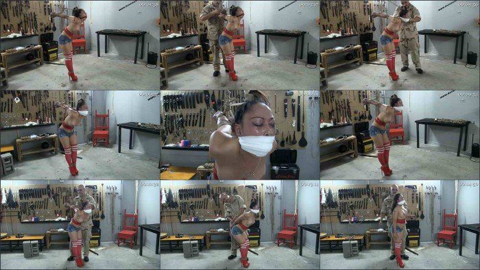 File: Gagged, Bound, and Spread in Short Shorts, Knee High Socks, and Heels Part 3 – Muffled Cries From Beneath a Wrapped Gag.mp4