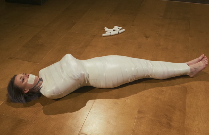 In this clip, Astrid finds herself wrapped in microfoam tape – yes, you heard that right! We know you’ve been eagerly waiting for this, and as a festive treat leading up to Christmas, we present this as the first independent installment of a quadrilogy, each featuring Astrid in a “white” mummification.