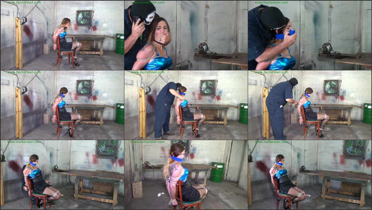 Sexy secretary Ayla was snatched off the streets on her way to work and awakens sitting in a chair in an old abandoned warehouse. She looks around in XXXX not knowing what is happening to her, all she knows is that the ropes dig deep into her flesh and that she can’t leave the chair. Ayla screams for help as she pulls desperately at the ropes. But the only attention that her screams attract are from the hooded brute the enters the room. Ayla sobs and cries as she begs him to please let her go. But he comes over to her chair and clamps his hand over her mouth and tells her that no one can hear her scream, but he finds it annoying. The brute then informs her that he is going to be making a phone call to her daddy and when he removes his hand she is to beg her daddy to pay. Ayla can hear the phone ringing and then hears her daddy answer the phone. She sobs into his hand as she listens to him make his demands then removes his hand and allows poor Ayla to plead for him to please save her. The brute then cuts off her begging by clamping his hand back over her mouth and finishes the call with a warning that the longer it takes the more nasty things will happen to his girl. He then pulls an old rag out of his pocket and stuffs it deep in her mouth then seals her mouth shut with layers of blue elastic bandage…