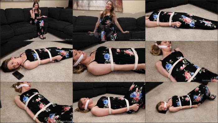 Chrissy is babysitting and is on the phone with her girlfriend while they are getting ready for bed. She tells her friend that they just finished watching an old movie where a woman was captured by robbers and tied to railroad tracks, and now they are trying to convince her to role play the scene out with her being tied up! She tell her friend she is just going to amuse them and play the game and then she will send them to bed and call her back…