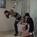 Sexy and petite Rachel Lilly is taken to the basement dungeon for training…Rachel is dressed perfectly…skintight jeans, sleeveless turtleneck and super sexy skyscraper high heeled platform black leather Giaro knee boots! Rachel accepts her fate and submmisively hands herself over for punishment! She is roped up and gagged onscreen and then finally tied into a strict strappado! Rachel does her best to struggle in this strict postion while teetering on those skyscraper high heels! What a very sexy Bootgirl!