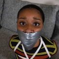 Rose has lost a bet to her friend and now has to do whatever he wants. She shows up to his place wearing a short silver dress like he asked, not knowing what to expect. He pulls out a bunch of rope and she reluctantly allows him to tie her wrists, ankles, and feet. He takes a brief break from the rope to buckle a 1.875-inch blue ball gag tightly between her teeth and then puts a chest harness on her. Her friend tickles her and then steps back to watch her struggle. The ball gag makes her drool uncontrollably, dripping bubbling globs of saliva all over her tattooed legs. Her gag is changed after a few minutes, a filled stocking packed into her mouth and sealed in with 6 strips of clear blenderm tape. After more tickling and struggling, Rose gets one last gag. A big pair of cotton panties is worked into her mouth and silver duct tape is wrapped over her lips. She won’t likely be able to drool through that! Securely tied, heavily gagged, with her panties on display, will Rose learn to be more careful with her bets in the future?