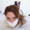 She’s relaxing on the couch watching TV when the step-son she’s babysitting approaches her with a roll of duct tape. At first, she doesn’t understand, but the step-son gives her a dirty look. Of course, she refuses, but things aren’t going as she’d like. We find her on the couch, hands, torso, legs, ankles… all tied up, protesting. She starts to get angry and orders him to be released. Making too much noise for his liking, he pulls off Brianna’s fuzzy sock and stuffs it in her mouth despite the babysitter’s protests! He secures the gag with a large OTM!
