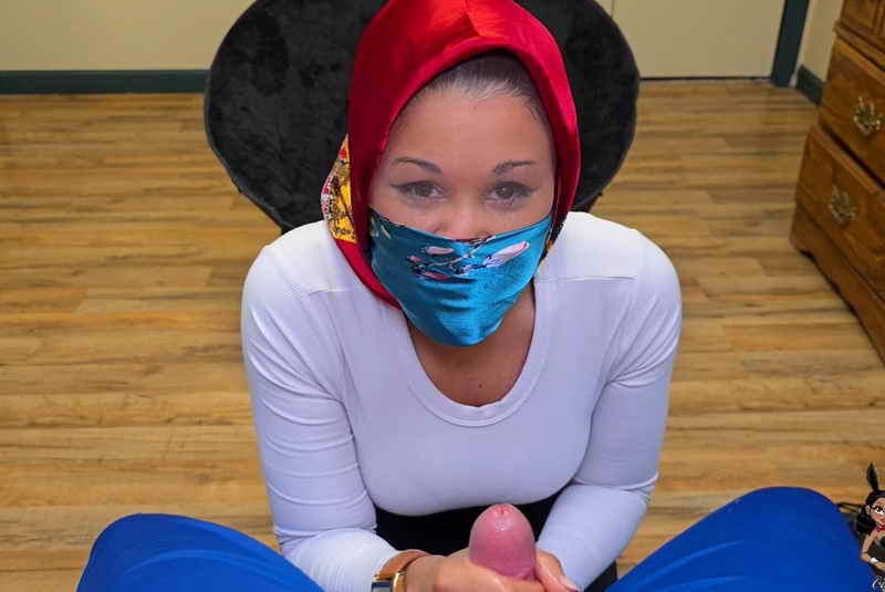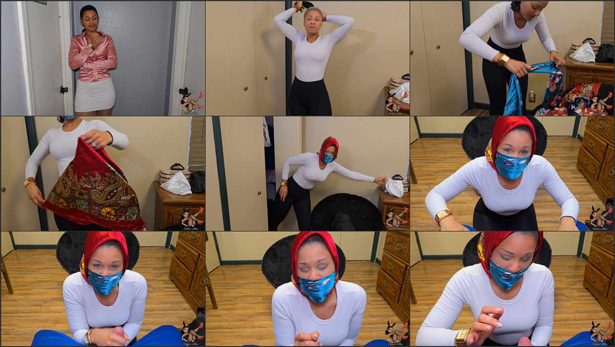 Calisa arrives home early and discovers you pleasuring yourself with the help of her satin scarves and nylons. She doesn’t stop you though, instead she watches quietly with a smile and decides she’ll need to punish you for this bad behavior. Later on she is in your room rehearsing her plan while pulling a nylon hood over her head and wrapping a satin scarves around her face and head. She hides in wait to catch you off guard and is successful in taking you out. When you wake up you are tied to a chair and unable to move. You are helpless as she kneels between your legs and reveals what she knows. You, her stepbro have been doing nefarious perverted things that she won’t tolerate. You must be punished for it. You’re going to be her permanent slave now, made to do anything and everything she wants. She tells you this as she jerks you off. Your cock is hard and throbbing in her hand and as she looks into your eyes commanding you to cum you can’t disobey. Now with her hand covered in cum and you a mindless zombie, she can be on her way. Until she needs you, slave.
