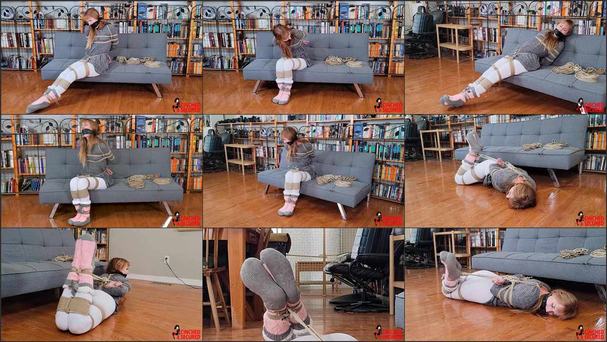 Cara was extremely excited to test out her new magic wand. She was hoping to bring inanimate objects to life and ease her household chores, but it seems that the wand had other ideas! Testing it on a pile of nearby ropes, she was disappointed when nothing happened. At least, she THOUGHT nothing had happened! When her back was turned, the ropes came to life, flying at her and quickly binding her tightly and inescapably! Before she could call for help, a nearby panel gag leapt into her mouth and buckled itself around her face! Now silenced, she could only writhe and squirm in a panic as she tried to release herself from the ropes or find a way to break the spell! There was no chance of that, however, no matter how much she thrashed or struggled. Worse, the ropes had not finished with her yet! Before she knew what was happening, another length of the enchanted rope quickly pulled her into a hogtie! Now truly trapped, she mewled into the gag, knowing that help would be a long time coming!