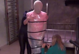 Footjob paradise, bound, mouthstuffed, hooded and shoegagged
