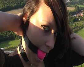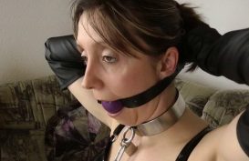 Handcuffs and Ball Gagged Pling in Leather Dress 2, Steel Collar