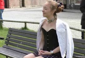 Justine with her Legs Locked in the Stock, Hands Cuffed to the Stock and a Ball Gag