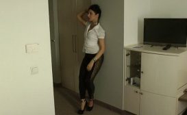 Maya Selfbondage, Leg Cuffs, Locked Collar, Ball Gag and the heavy Handcuffs