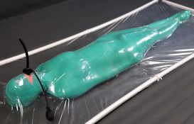 Mummification bandage vibrator and inflatable gag in a vacuum bed, Vacuum Dreams