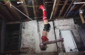 Jessica – Bound and gagged on the trapeze, jimhunterslair
