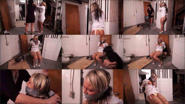 Adara is a woman that uses her sex appeal to get what she wants in life. Her clothes are a little too tight and short. She flirts with everyone. She knows exactly what she is doing. She is a Realtor. She met JJ a single woman looking for a home. Adara assures JJ that this house is in fine condition and just needs some paint and cosmetics. She assures JJ that she doesn’t need to waste time and money on an inspection. JJ hypnotized by the young womans assets buys the home from her, really hoping for a date but after getting her commission Adara had no use for JJ. So it turns out the house is a real nightmare with tons of problems that any confident inspector would have caught. JJ is angry at the cute and curvy realtor and decides that she is going to lure her there by telling her she is interested in one of her other properties. When Adara comes in she is dressed to kill- garter belt showing through her painted on skirt. She is grabbed and dragged away. The scene cuts to her tied to the wall standing. The women exchange some unpleasant words and Adara is gagged with a bandana and tape. Her skirt has been pulled up. Her huge, toned tan ass is exposed. She is released from the wall and tied to a chair. Her boobs are pulled from her shirt, her panties are wedged up her privates. The pretty woman is tied up and helpless not sure what will happen to her.
