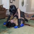 I’ve been a trained undercover agent for the DEA for decades. I’ve been tracking a smuggling ring and I have a great lead. I get into my car to check out the intel and am attacked from the back seat with a . It tightens around my throat and a woman begins questioning me. I kick and struggle gasping for breath, but the bitch is strong and everything gets dark and I go out. I wake up bound to a chair in my house and a busty young brunette woman is groping and manhandling my bound body. My elbows have been painfully crushed together over the chair back and I’m cleave gagged. I choke and reach to grab the but it just out of reach and I go out again. I feel her rubbing her gloved hands up and down my legs and I pretend to still be out of it. Gia Love has plans to take me to her boss for interrogation and I pretend to be a lesbian and I make advances to her begging her to untie my legs. I wiggle the gag out of my mouth and plead with her.