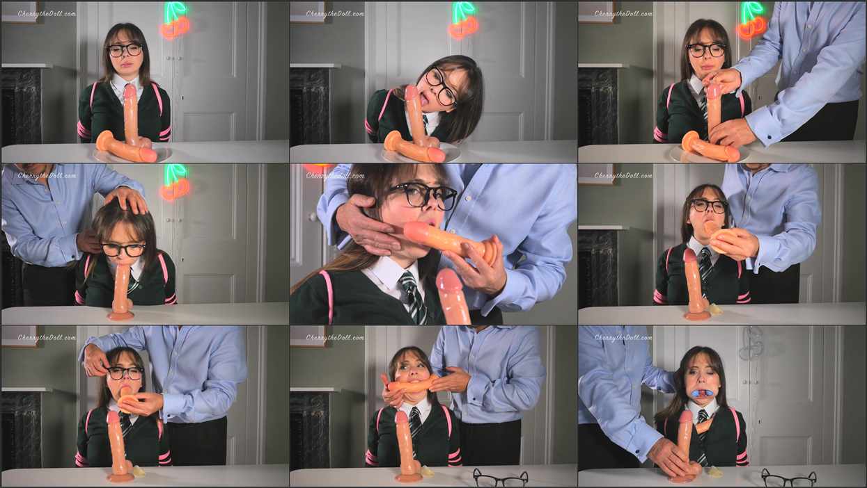 Little Cherry is back from the Academy where she learned lots of useless stuff that will only confuse her tiny mind. Luckily the man is back fresh from Fatherland to help remove Cherry’s thoughts and replace them with empty mindlessness. Cherry is made to focus on the rubber dildo pushed into her hot little mouth until tiny tears appear. Finally it’s time for Clown face. The spreader appears. The Man’s favorite way to remove a girl’s dignity. Stretched lips painted with slut red, an invitation for penetration.
