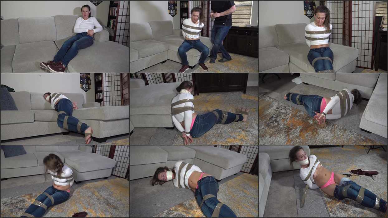 Cheyenne wanted him to do something for her. He told he would, but only if she let him tie her up and gag her. Not having any rope, the man taped her tight with packing tape. He stuffed and taped her mouth, to gag her and then left her to struggle.