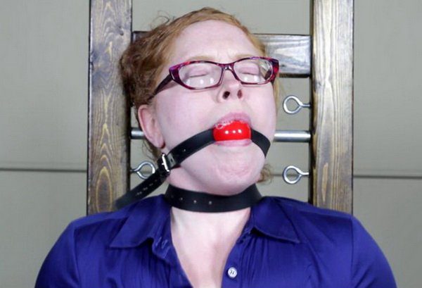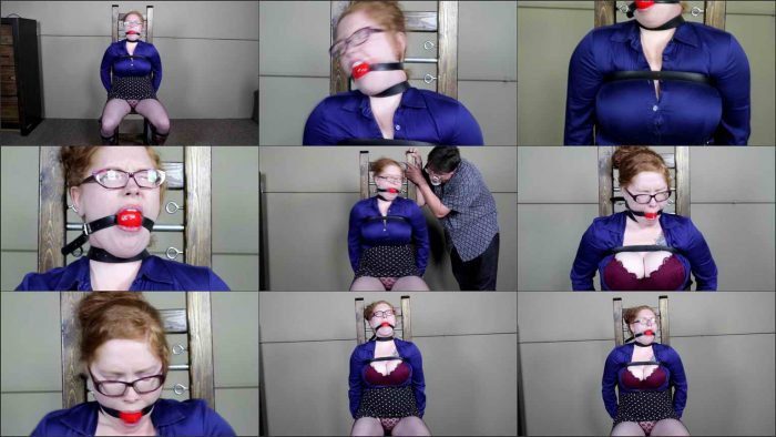 When secretary Mabel Syrup took this job she wasn’t worried about the low pay. She thought she could embezzle more than enough to make up for that! Unfortunately, she got caught, and now the poor redhead is strapped to a chair, interrogated for the codes so her boos can transfer back all the money she stole! She’s defiant and refuses to talk. Since she wants to keep quiet, a nice fat ballgag will help her with that! That poor girl starts drooling all over herself, struggling and mewling to free herself as her boss leaves her to think about what she has done. When he returns, he gives her one last chance to talk, but she still refuses…