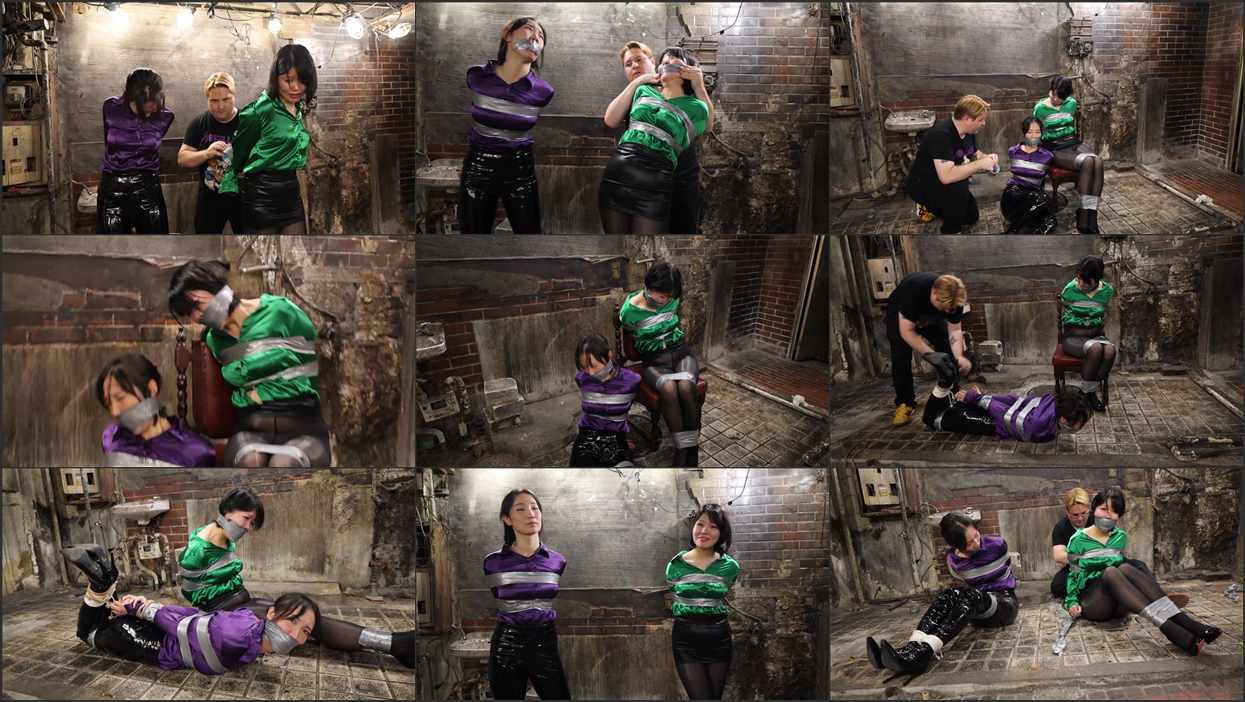 Detective Nao Iinari captured, taped up to a chair and gagged, then taped up to a pole, Hollyrope Omega