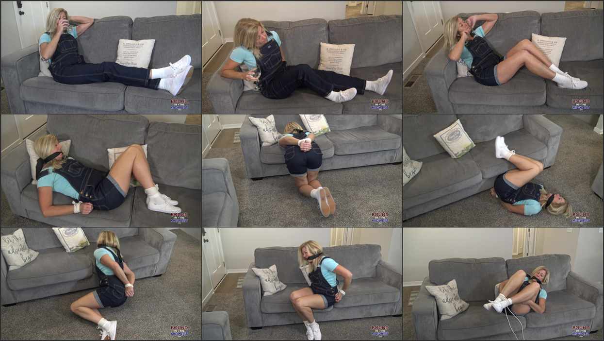 Dakkota trying to relax when her pants get ripped. After she makes them into shorts she gets bound and gagged and struggles to escape.