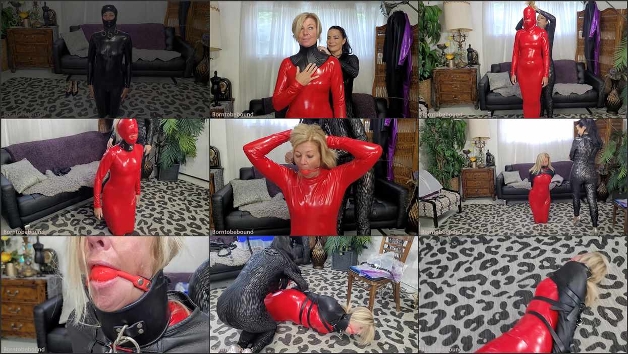 This was a long video of Dakkota trying various fetish items for a custom client that I shortened A LOT. I show a little bit of her in the black catsuit because it looks incredible on her and then sliding into her heels in the red hobble dress, a couple posture collars and then I get her into the bolero style armbinder and a few straps and hogtie her while she is in the neck corset while still ballgagged. She puts on a struggling show for us and I smack her butt a few times and rub my pantyhosed foot on her lovely body.