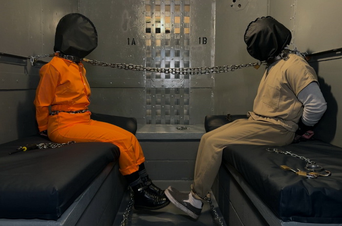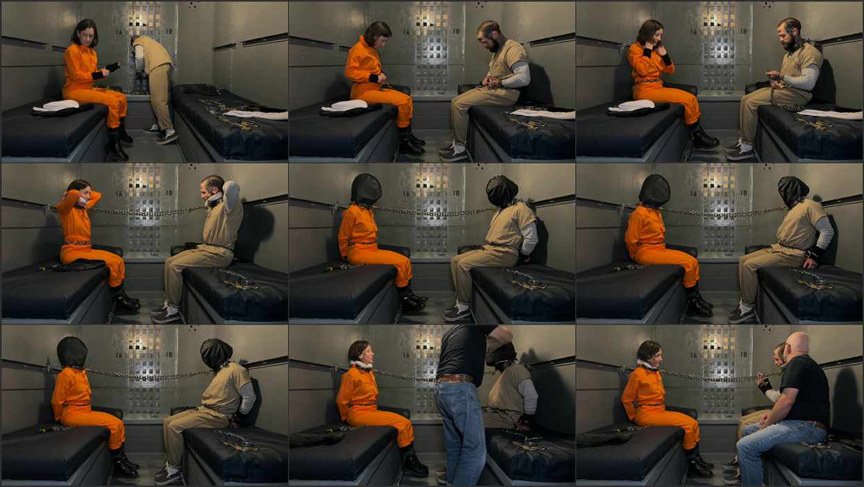 Elise and Heavy are cellmates. This means that they are quite familiar with one another’s peculiarities. One obvious weird thing about Heavy is that they enjoy putting themselves into strict bondage – even though they are already locked away in a prison cell. Over the years, Heavy has somehow managed to amass a large collection of restraints and chains. Though Elise has grown to accept this about Heavy, she has never engaged in the practice. Though, upon learning of an annual meeting of the guards, Heavy took it as a sign to offer to show Elise the ropes. A bit hesitant, but insanely bored, Elise agreed to follow Heavy’s instruction and put herself in bondage alongside the more practiced Heavy. Utilizing chains, handcuffs, a metal collar, a gag and a prison transport hood, the two of them lock themselves up. Heavy and Elise bask in their shared yet independent bondage experiences, with Elise waiting for Heavy to eventually unlock themselves so they can free Elise. This doesn’t happen, as self-bondage can be unpredictable and quite dangerous – even for seasoned players. For this reason, BTS footage of what caused an issue that prevented Heavy from being able to escape has been included, and hopefully this serves as a cautionary tale for those who think they can outsmart the dangers of self-bondage play.