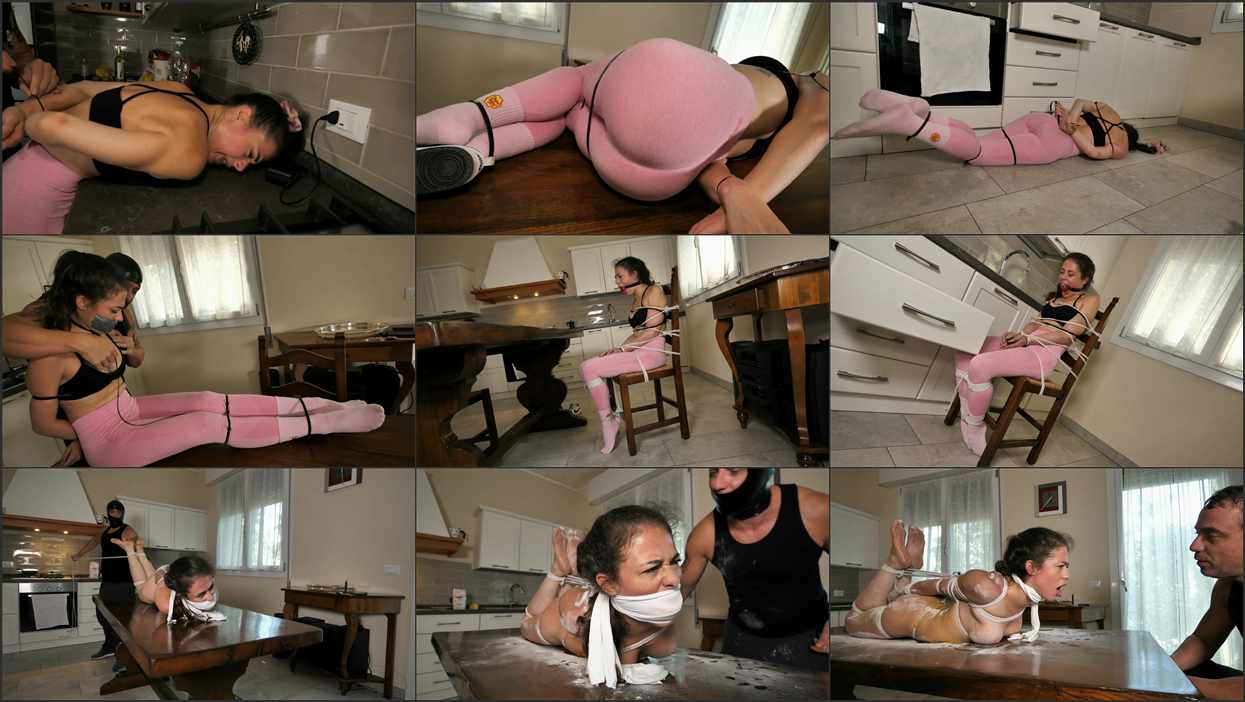 Tony is hungry. He is the terror of the town, a masked predator who has robbed and tied up countless victims. But this time, he saves the most tempting prey for last: Fatima, a stunning beauty in pink leggings, black sports bra, and socks.