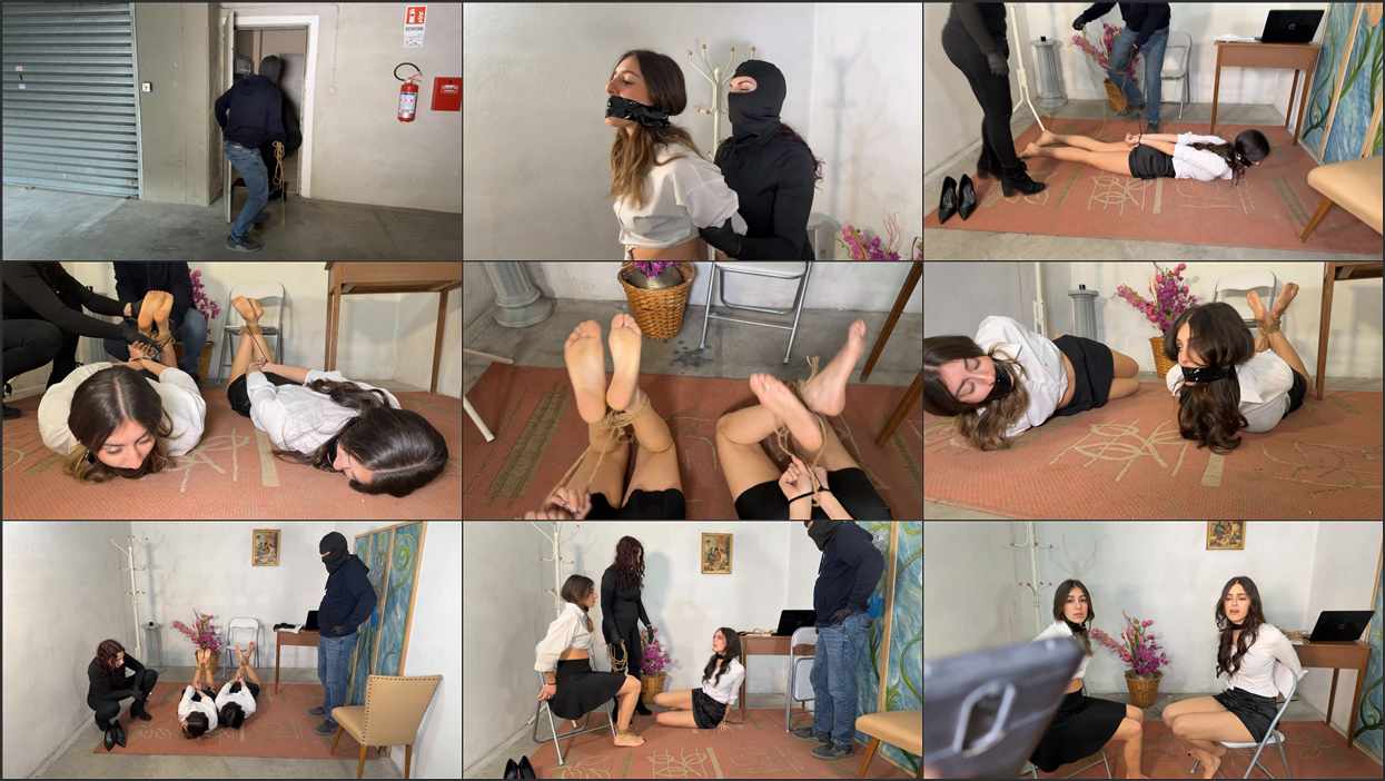 Gaia and Luna are lone workers in an office run by a paranoid boss. He likes to randomly test security at his facilities and even in his office where he keeps secure documents. Gaia and Luna are both new and don’t realize they are working on one of the boss’s test days. He has a security chief carry out his plans to see if the office ladies will maintain awareness and not allow anyone inside. They fail the test and must be bound and gagged for failing.