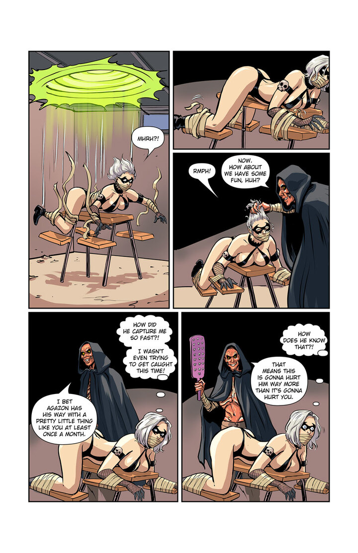 Gothica finds herself caught in the crossfire of a grudge going back 140 years! Armed with never-ending bandages, a cursed man named Bones captures Gothica! While Gothica is no stranger to tough situations, Bones may be the toughest, strongest, and hardest opponent that has ever had Gothica in their clutches. Will she manage to escape on her own? Or will her demonic benefactor, Agozan, be forced to interfere?