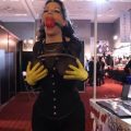 We just got back from a trip to Europe. This was live at the Venus Fair in Berlin. Venus is typically geared towards vanilla pornography however they have a fetish area as well. I was in the fetish area and nominated for Best Fetish Performer award! Awesome right? A 37 year old all natural, “plus sized” woman that doesn’t do anything nude. Anyway I didn’t win, Cobie from Australia won and it couldn’t have gone to a greater girl. She is flat out adorable and looks good in the nude ;). So back to the clip. When it starts I am in a chicken wing with a large open mouth gag. I start to walk around. Some people stop for images and Tony follows with the camera. I leave the fetish area and go into the main lobby/ hall and then venture into one of the side rooms momentarily but I don’t really venture down those aisles. They had a lot of people and filming would have been hard. At one point a man approaches and grabs the nipple clamp, when I signal that it isn’t ok he is apologetic. At one point one of the pornstars a tall very slender black girl I had never met approaches and starts to lick all the drool off of my chest and neck! I ask Tony to remove the clamps because and continue back to towards the booth and pose with a few people. Then a newscaster for the event came up. Tony asked if I wanted my gag out but the reporter said it would be much funnier if I tried to talk gagged. Agreed. One of the questions he asked me is what what one of the most embarrassing sex situations that have ever happened. I just laughed not knowing what to say and I couldn’t think of anything anyway..He seemed super disappointed in my response, lol. People are much more well mannered there than lets say the AVNS in Vegas. Well that was my experience anyway. We chose to do this walk early on Friday when most people were at work. The fair gets sooooo busy during the evening it is really overwhelming for an introvert like me. This was tolerable and much easier to film.