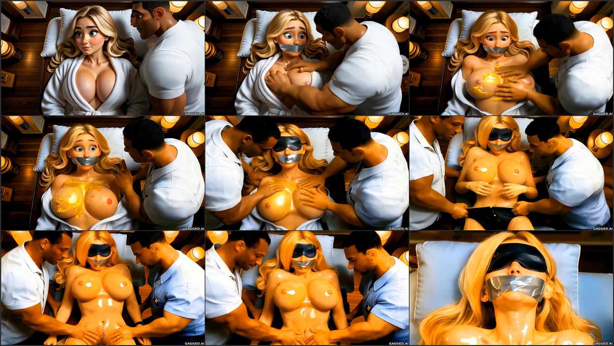 Stunning Danish Instagram Model Ella gets lured into a private Brazilian beach cabana for a “special” massage. Watch this busty blonde beauty get oiled up, duct tape gagged, blindfolded, and overwhelmed by two strong masseurs’ hands on her massive tits and exposed pussy until she explodes in a shaking, muffled orgasm!