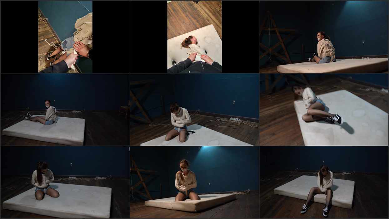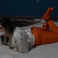 Jasmine has been bad and need an SJ timeout. She runs but then relents and is soon strapped in and then tape gagged and left to roll around on the mattress.