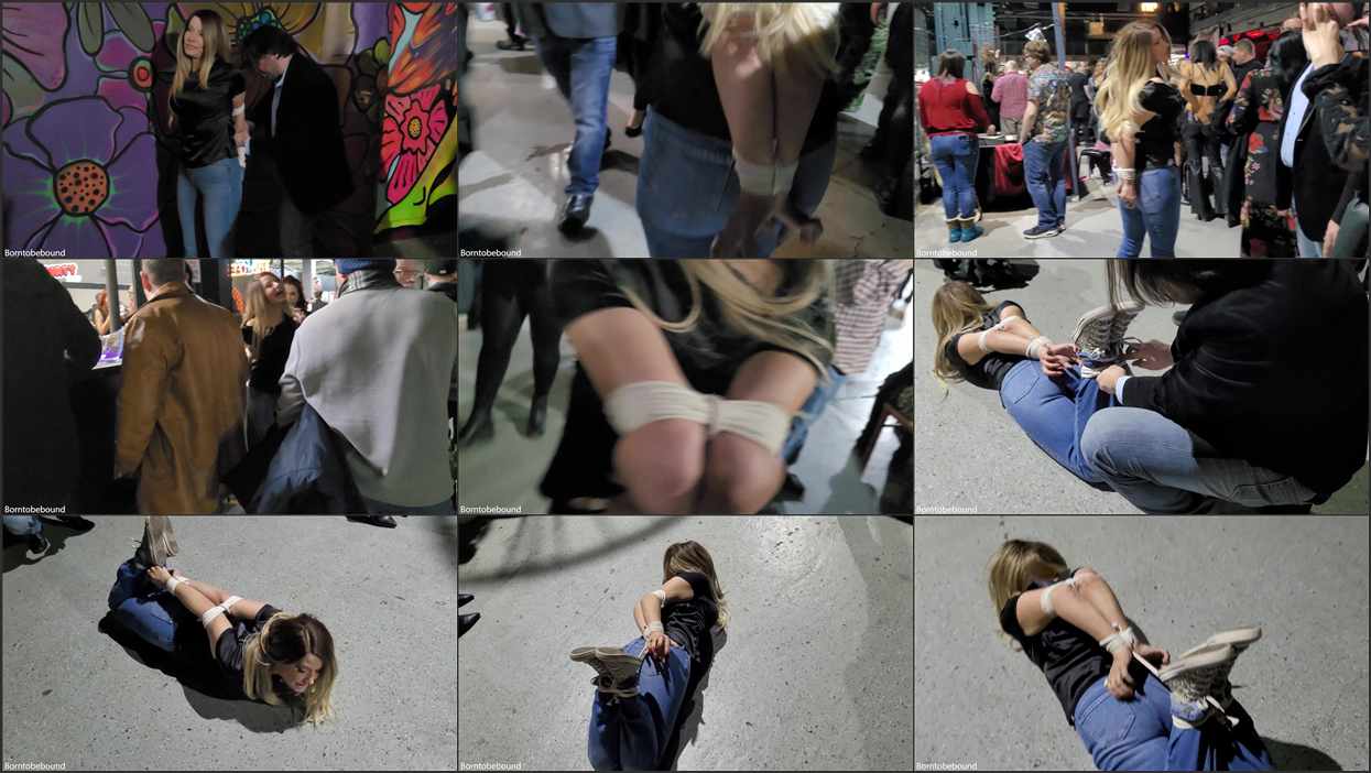 The task was to wear jeans and converse and to be tied up roaming around amongst the crowd at the Detroit Dirty Show which happens every February. February, when the vanilla folks decide to venture out to do something crazy because of Valentines Day…. Sooo there are many people in the crowd who are absolutely NOT accustomed to kink, as well as those who love it and live it. This clip was commissioned by someone who loved the clip of Jim Hunter (RIP) and I shot on a boat at a Detroit boat party called jobbie nooner many years ago. I am a voyeur and not an exhibitionist so doing this type of thing especially in my day time clothes and not as an event performer is wildly uncomfortable…. Tony ties me, you can see Cherry Busom/ aka Lushes Lamoan filming a bit. I wander the show. They try not to film too much of the event… I chat with people, look at art and finally get hogtied on the filthy warehouse floor. By the end of it Tony was sitting in front of me and filming me hogtied. I was soooo out of it (ropey dopey, subspacey, blissed out- call it what you will) that I looked up and saw him in front of me but I had absolutely no idea who he was or where I was. I’m just being brutally honest here…. I’m going to say that lasted about 4 seconds before I snapped back to reality.