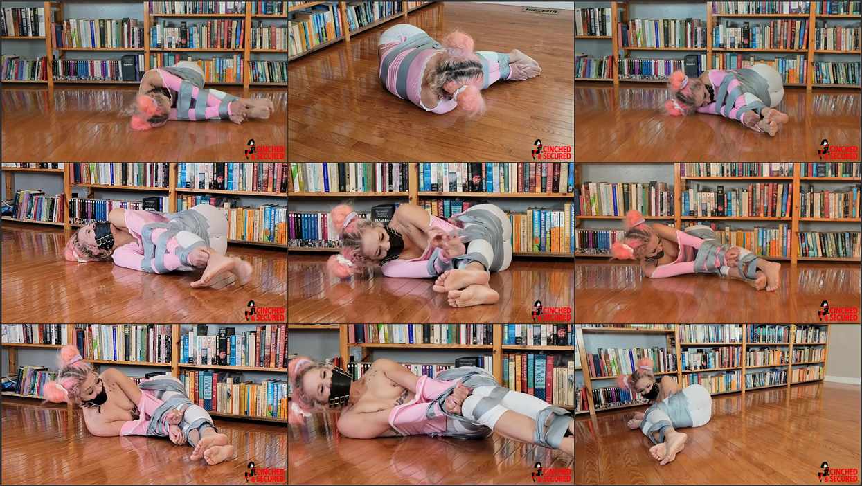 Amateur escape artist Kiki Cali picked up an unwanted admirer after her last show! Now, trapped in the strange man’s house, Kiki is tied up in tons of ultra sticky tape, her mouth gagged with a panel gag, giant ball stifling her cries, her “fan” wants to see if she can escape! If she can’t, he has many more horrible things planned for her! She struggles furiously, unable to loosen her bonds or make herself heard thanks to the gag. She kicks and wiggles her bare feet, but they are no help in affecting an escape. She wishes the gag was not so effective, especially after she hears more men at the door! She does her best to alert them to her plight, but she cannot be heard! Too bad for her, as they have some VERY bad news for the helpless lady! Can she free herself before it is too late?