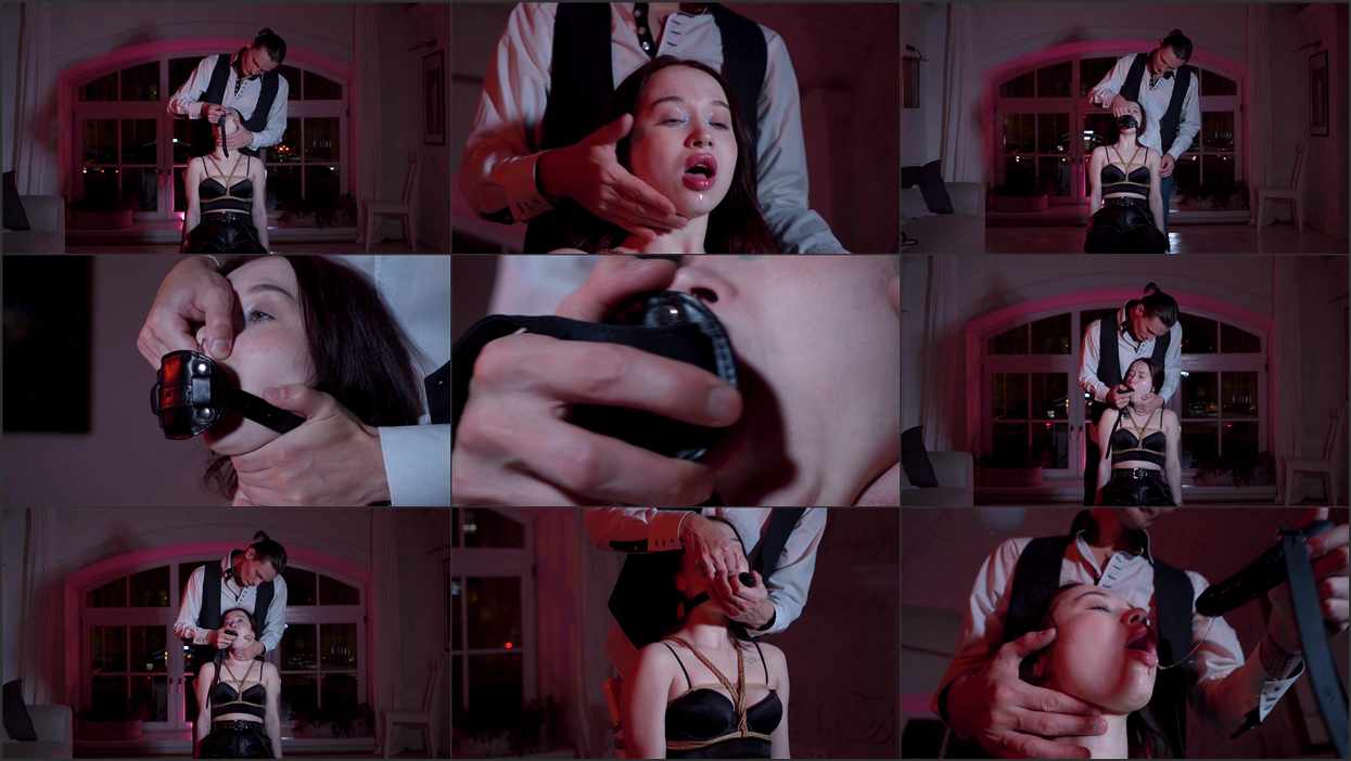 Kira begged the dark ones to be shattered, and Alex delivers. He roped the greedy little slut tight to a cold steel chair, legs spread, wrists useless, mouth already gaping in anticipation. One by one he screws in thicker, longer dildo gags, each pump stretching her velvet throat until shiny ropes of spit pour down her trembling chin. She gurgles, eyes rolling, mascara racing the drool to her tits while he cranks the buckle one notch past “too much.”
