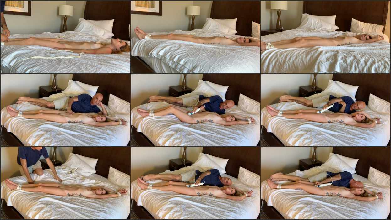 Have you ever found yourself longing to sneak a peek at our full-length video without diving into the entire experience? Your search ends here with our “Talettes” collection, offering you exclusive snippets from our videos. In this particular talette, Kody Evans gradually sheds her clothing, piece by piece, until she stands bare, vulnerable and unadorned. She willingly surrenders to being gently bound and laid out on the bed, her skin exposed to the cool air. The anticipation builds, culminating in the moment she receives the delightful reward of the magic wand—a tantalizing promise of pleasure to come.