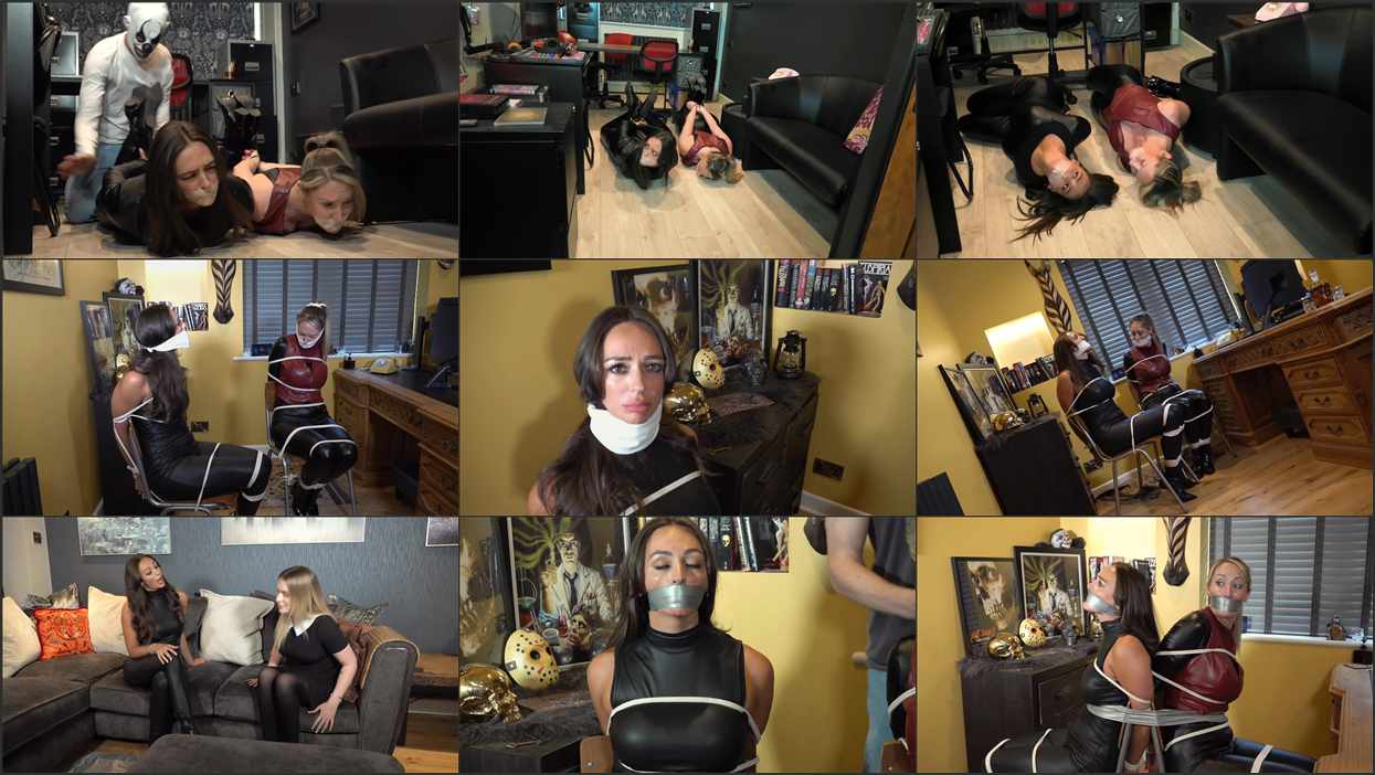 Both leather-clad beauties, mouths tightly taped, eyes frantic squirm majestically while trussed in super-restrictive zip-hogties! Their gleaming heeled leather boots kick and muscular shiny asses pump! They mumble incoherently, desperate for release. It isn’t coming any time soon, so maybe they should try harder, hmmmm… while we watch, with excited amusement…
