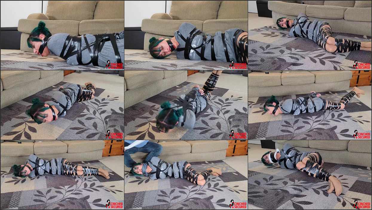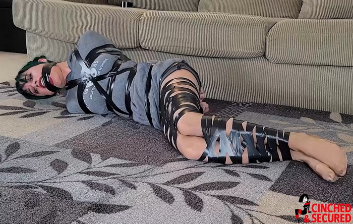 Lilith laughed to herself when the intruder pulled out the rolls of electrical tape. Did he really think she could be restrained with such a simple material? As the tape wound its way over her body, circuit after ever tightening circuit, she stopped laughing. She had not counted on the constricting nature of the tape and how it would relentlessly squeeze itself tighter and tighter, nor did she realize just how much tape the intruder would apply to her tiny taped torso! Now, she was truly helpless, her mouth packed and her cries stifled by more turns of tape keeping her mouth jacked open and the wadding in place! Her limbs were quickly losing all feeling but still she thrashed about, hoping to free herself, despairing at the way she could pull her arms a fraction of an inch away from her body before the elasticity of the tape sXXXXped them back in place, tighter than before! When the man returned to “improve” her gag, tying a fat cloth between her teeth, another rag tightly over her face and finally wrapping even more of the hated electrical tape over the entire mass, she knew her ordeal was hopeless. No one could hear her, no one would find her, and no one would miss her until long after it was too late for her!