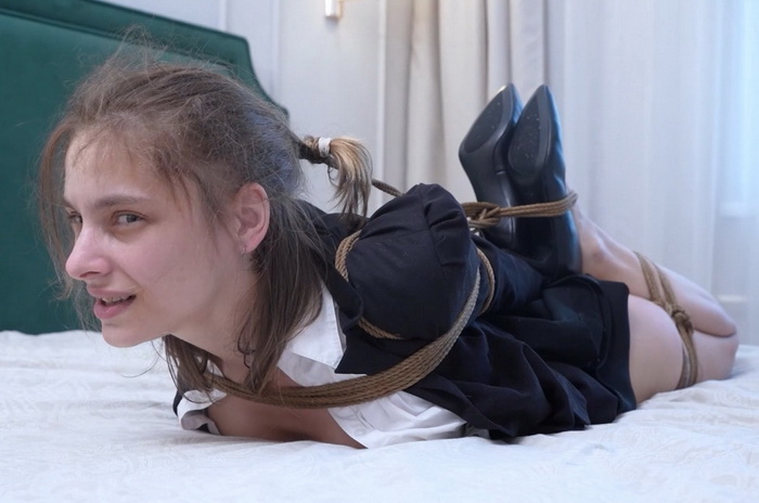 I open the door in my starched white blouse and tight pencil skirt, Bible in hand, ready to save souls. Instead, I meet the charming zealot who worships a darker deity—Control. He grbs ny hand and and my legs turn to jelly; the room spins, my voice fades. Before I can flee, rope snakes around my wrists, yanking my arms behind the back. My black heels scrape the floor uselessly while he knots every limb tighter, savoring each helpless squeak I make.