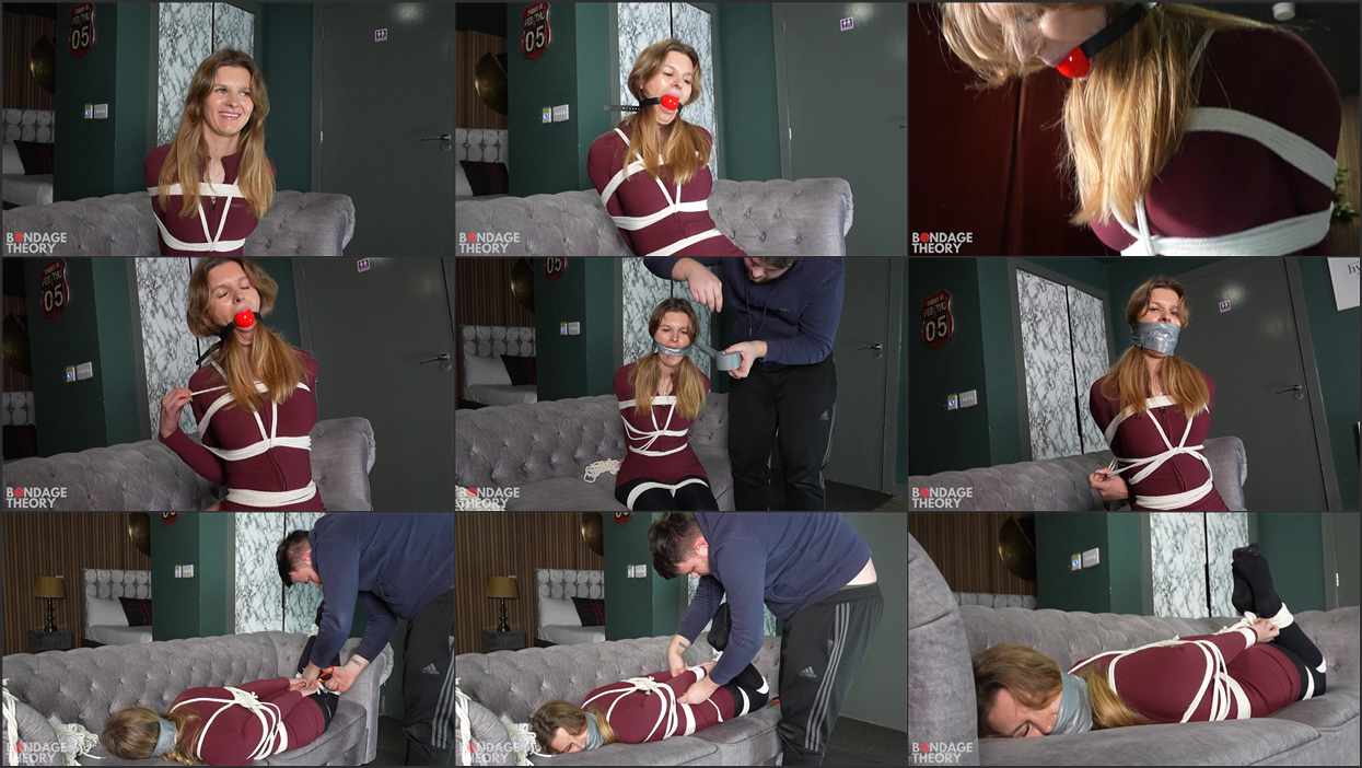 Lilly Luscious’s boyfriend had been hinting for weeks that he wanted to try something more extreme with bondage. At first, Lilly was nervous and unsure. She had never gone that far before. But after talking it over, her curiosity won out and she finally agreed.“I know a friend who’s really good at this,” her boyfriend said with a grin. “He can tie you up super tight and use some really harsh gags. You think you can handle it?” Lilly hesitated for a second, then nodded. “Okay… let’s try it.”Later that evening, the friend arrived. He brought a huge bundle of thin white rope. Without saying much, he started tying Lilly. He wrapped the rope around her body again and again, pulling it incredibly tight. He used so many meters of rope that her arms were pinned hard behind her back, her chest and legs completely bound. She could barely move at all.Then he pushed a big 2-inch ballgag into her mouth and buckled it tight behind her head. Lilly’s eyes widened. It was much bigger and stricter than anything she’d tried before.She immediately started struggling, twisting and pulling against the ropes with all her strength. But no matter how hard she tried, the thin white rope held her fast. It felt completely impossible to escape.After watching her squirm for a while, the friend removed the ballgag. Lilly gasped for air, but before she could say anything, he wrapped her entire lower face with layer after layer of sticky tape, making a tight tape wrap gag. Then he pulled her into a strict hogtie, connecting her wrists and ankles behind her with even more rope.He stepped back and smiled. “Good luck getting out of that.”Now Lilly lay on the floor, tightly hogtied and heavily gagged with tape. She moaned softly and kept struggling, her body rocking side to side.Will she be able to escape?