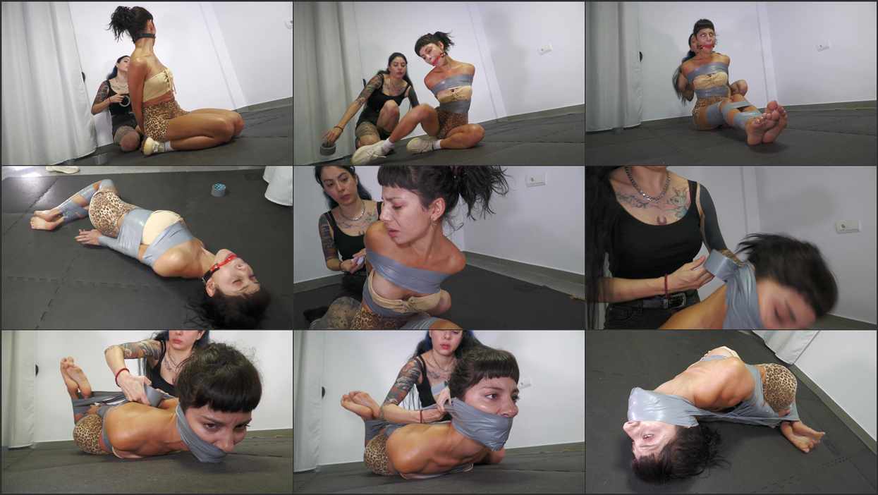 Mayla is looking for her roommate Liricaa. She enters her room and finds a weird envelope in the bed. She gets curious and decides to look inside. Unfortunately for her, Liricaa enters the room and sees her. There’s some secret documents about Liricaa’s secret life as a villain, and now that Mayla saw those documents, she can’t go anywhere. Liricaa grabs her arms and ties her hands with tape. “What?. MMMMMMMMMMPPPPPPPPPHHHHHHH!!!!!!!!”…